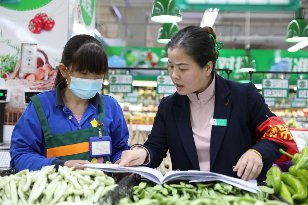 鑫海韵通双兴大卖场超市的货架上,品类丰富的商品整齐排列、明码标价,让市民买着安心、吃着放心。工作人员仔细检查商品的进货凭证、生产日期、保质期等信息,确保食品来源可靠、质量安全。