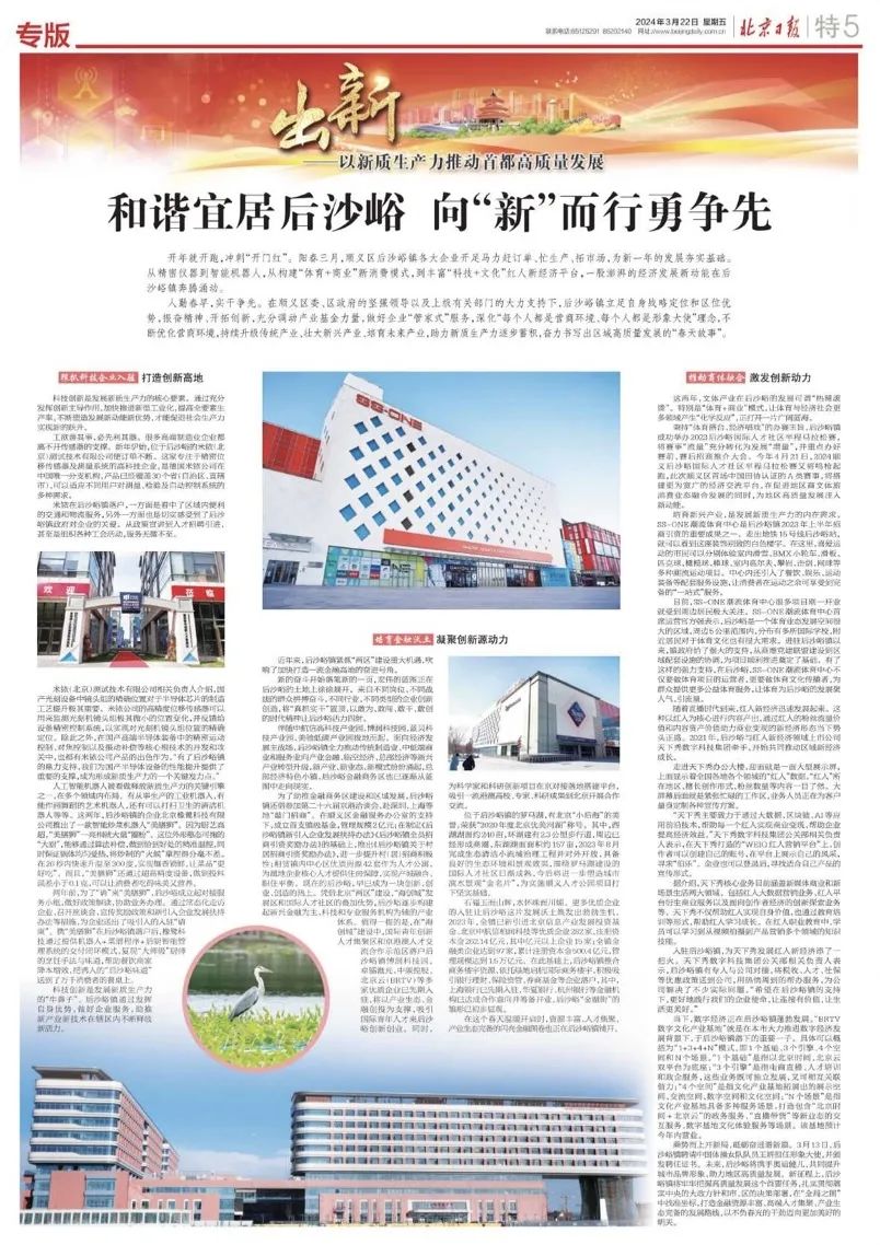 今天(3月22日)出版的《北京日报》特5版,专版刊发《和谐宜居后沙峪 向“新”而行勇争先》。全文如下: