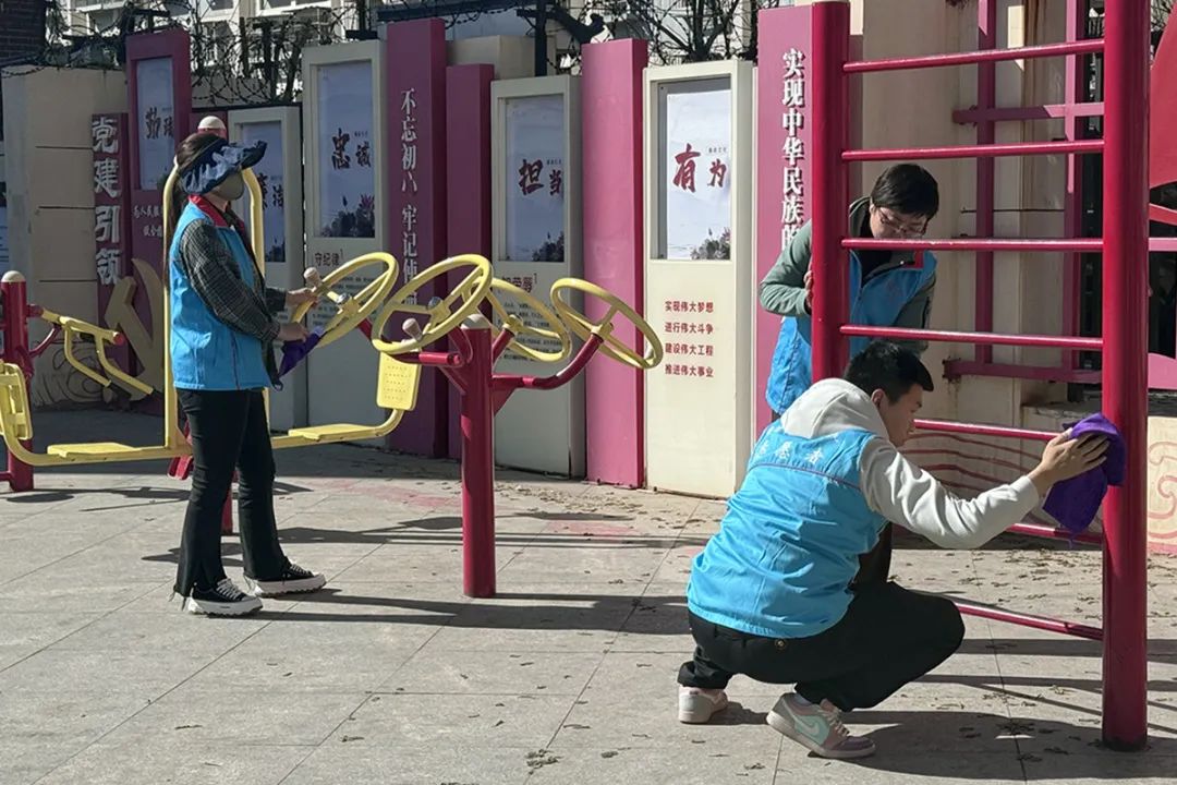 规范非机动车停放、擦拭公共设施……区政务服务局结合“区直包街”工作机制,组织志愿者来到顺祥街(站前北街至乾安路路段)开展志愿服务。志愿者们身着蓝色马甲,手持清洁工具,认真检查并维护路面环境卫生。在现场,他们将随意停放的自行车码放整齐,维护良好的街面秩序,还细心地擦拭街心小广场健身器材等设施,用实际行动扮靓城市街道。