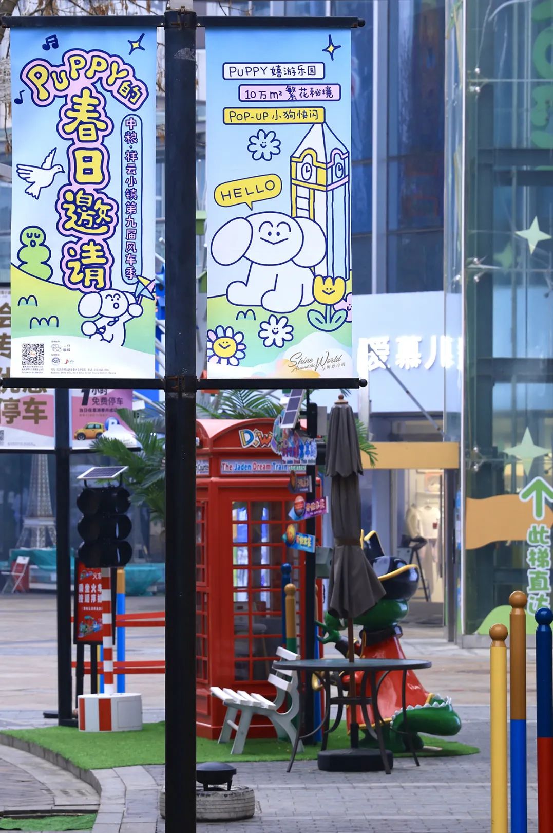 风车季期间,南区北入口处将打造“欢迎PUPPY”装置,迎接来往小镇的市民;北区4至5号楼之间将打造一处“PUPPY玩乐园”,风车元素搭配可爱的PUPPY,尽显童趣;在小镇主体建筑西侧的“祥云夕街”,还将设立“PUPPY商店”,多种好物等待市民挑选。