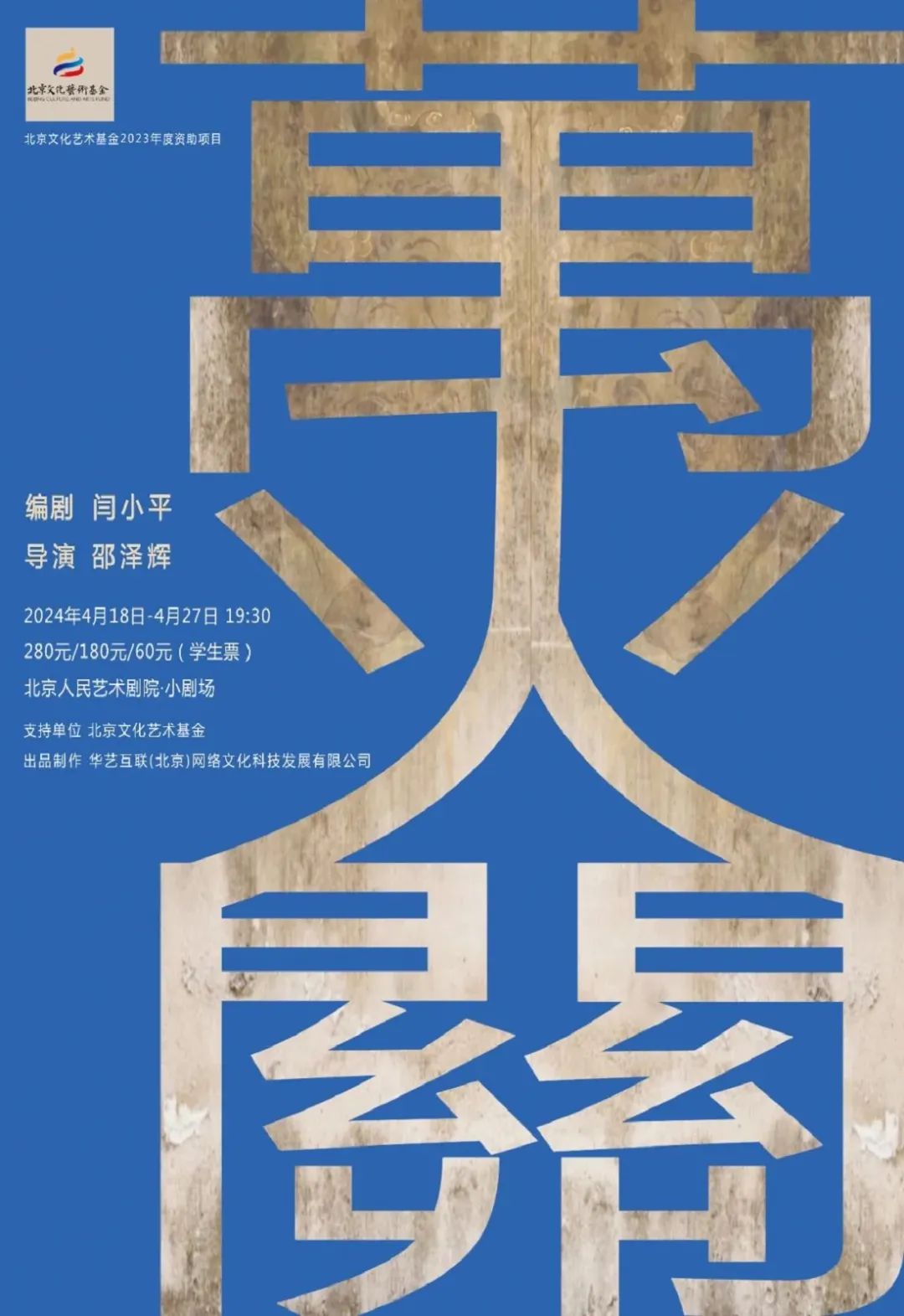 2023北京文化艺术基金资助项目,李乃文、唐旭领衔主演,赵淼执导,于2024年4月4日-6日在北京人民艺术剧院首都剧场开启全国首演。