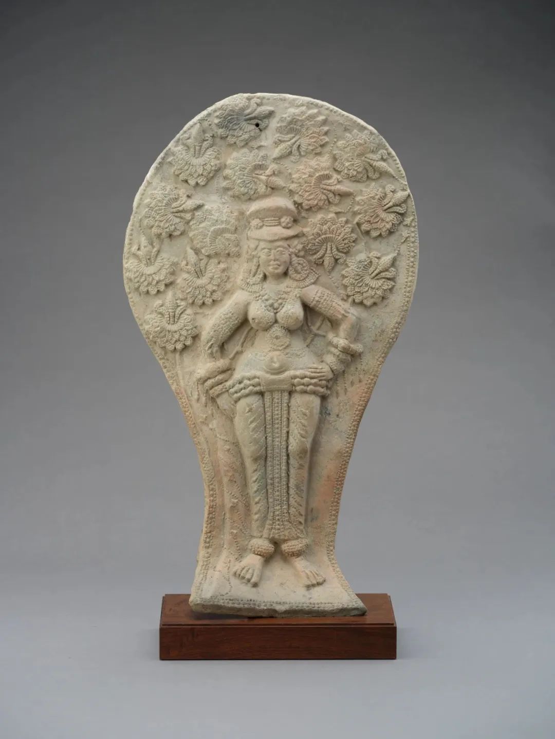 下左:女神像供奉版,印度,巽伽王朝(公元前1世纪)