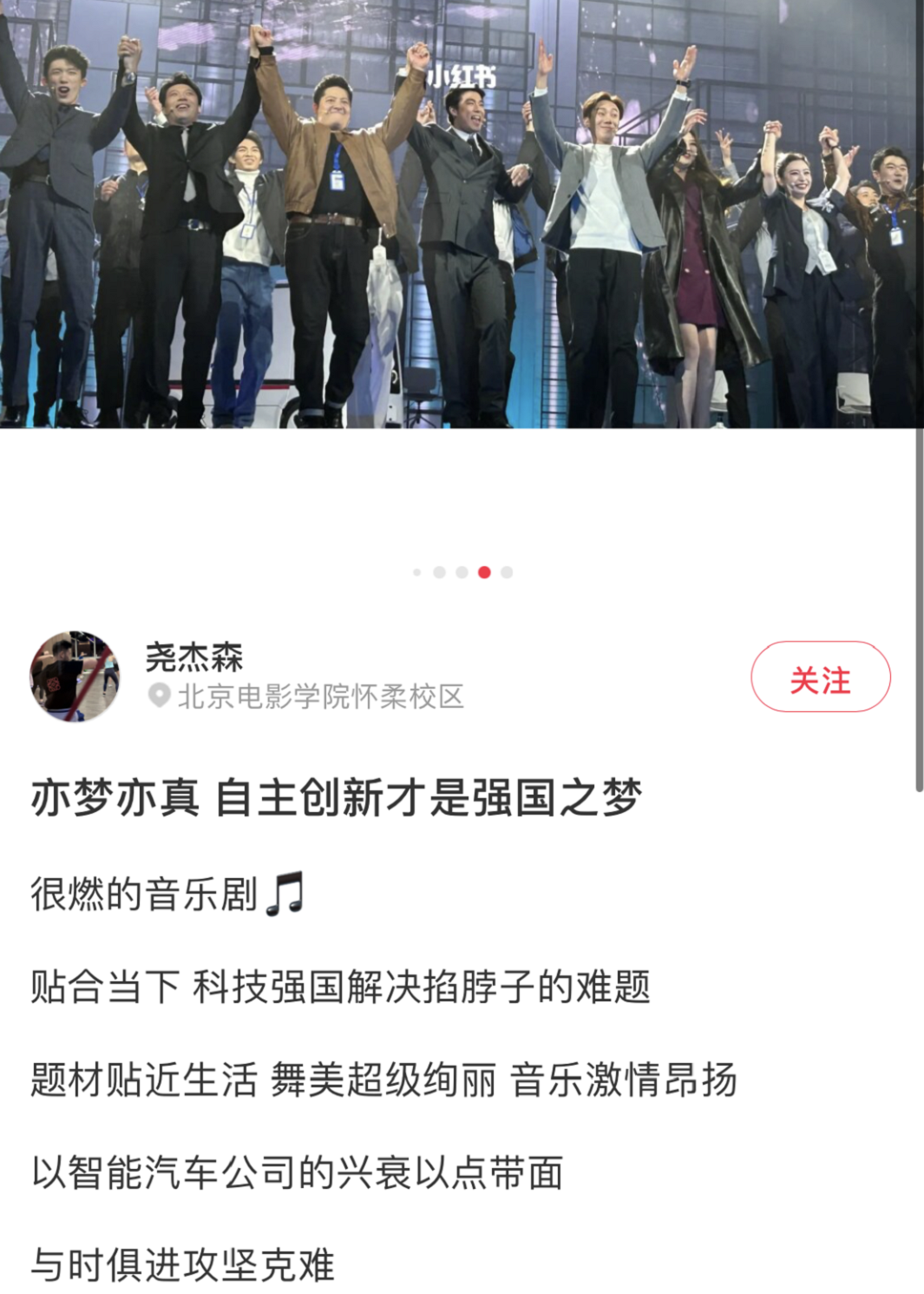 北京演艺集团聚焦现实题材,以“创新文化”“科技自立自强”为内涵,凝心聚力出品的原创音乐剧作品,也是北京演艺集团原创现实题材音乐剧“奋斗三部曲”之一。