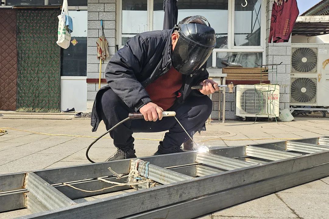 记者见到张汉军的时候,他正戴着焊接面罩,拿着电焊机仔细地焊接梯子。“这是邻居家的,让我帮忙修修,一会儿修完我得赶紧送回去。”张汉军说。