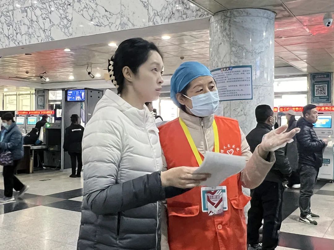 “您先在这边缴费,然后在对面的药房取药,记得取药时先扫码报到。”在顺义区医院门诊大厅,志愿者李艳新正在为患者提供就诊引导服务。