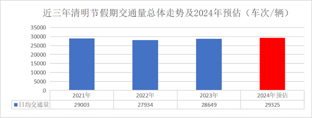 根据往年清明节假期出京和返京交通量对比,预测假期内出城交通量峰值出现在4月6日16时至19时,其余时段基本稳定。