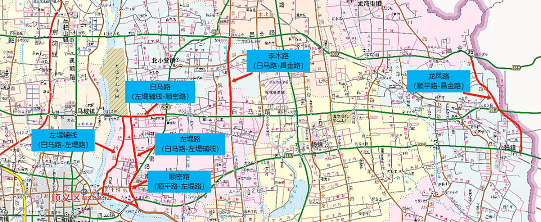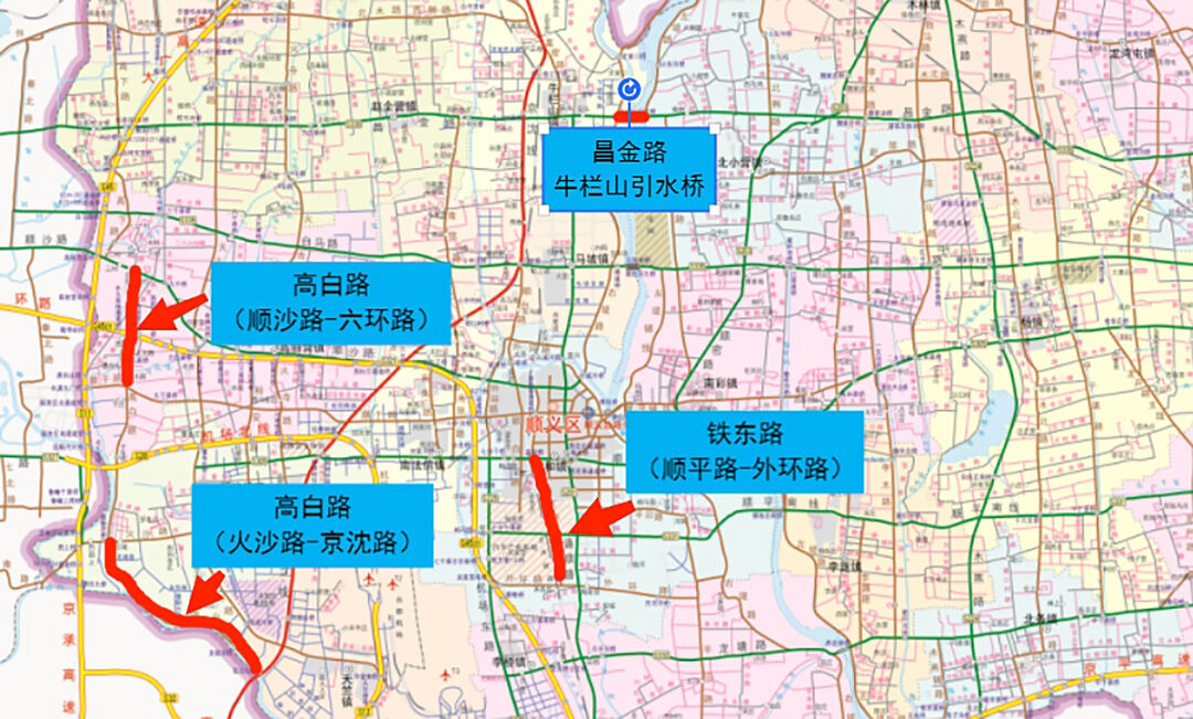 假期内,高白路施工涉及两段,其中火沙路至京沈路路段占路施工,过往车辆可绕行天北路;顺沙路至六环路路段占用西侧主路施工,东侧主路和辅路可通行。铁东路(顺平路至外环路)占路施工,过往车辆可绕行通顺路。昌金路牛栏山引水桥左桥封闭,右桥通行。上述三处道路通行能力下降,将对市民出行造成一定影响。