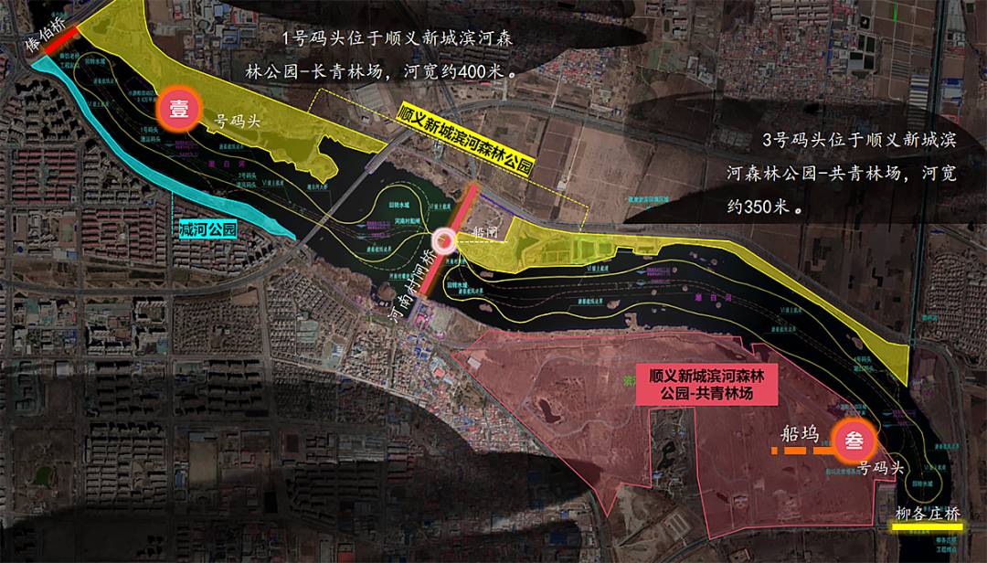 潮白河通航项目规划航线图。