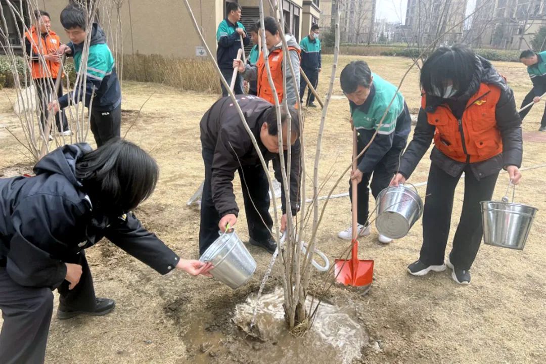 双丰街道在兰庭珑湾社区开展义务植树活动。