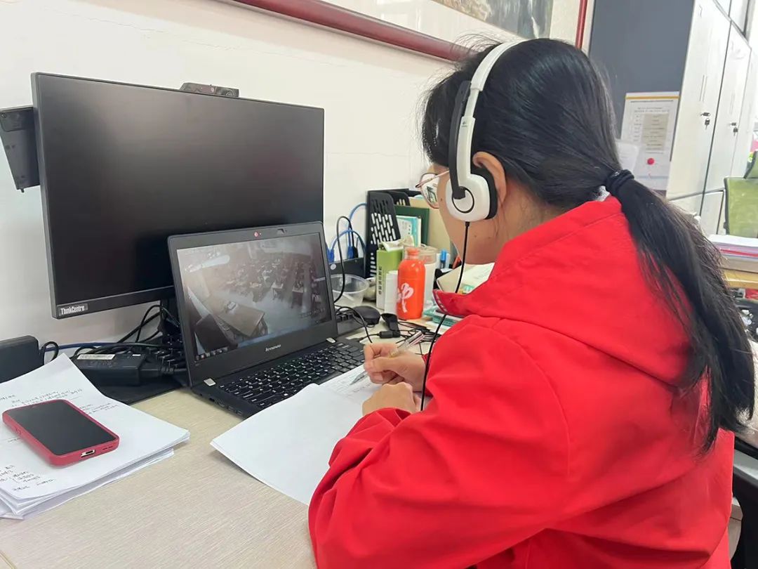 首师大附属顺义实验小学教师通过视频融合平台在线听课。