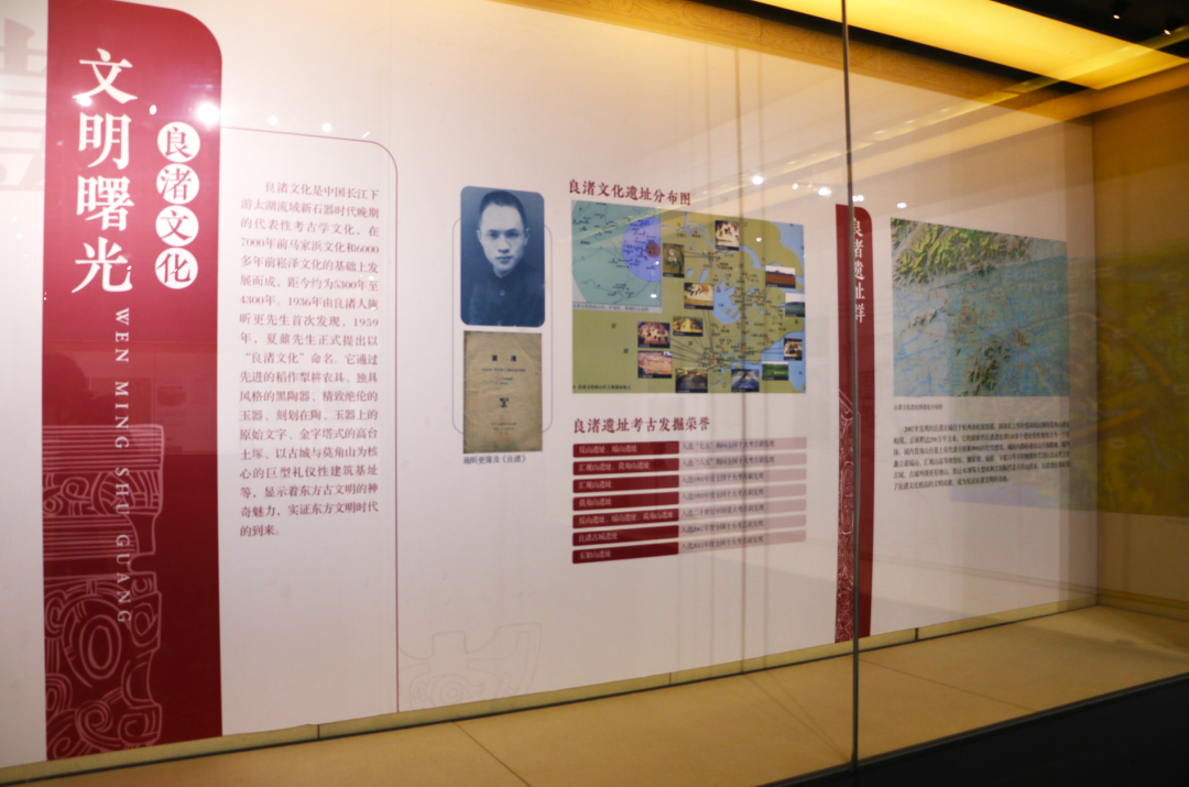 展览分为四个部分,分别介绍了良渚文化代表性遗址群、神圣精致的良渚文化玉器、巧夺天工的玉器加工工艺,以及良渚人田稻行舟的生活。采取实物展出与图文展示相结合的形式,透过120组良渚文化玉器、石器、陶器精品,向观众展示良渚文化玉器之精湛与神圣,生动全面地介绍良渚文明与当时社会的文化背景。希望观众通过展览可以跨越时间与空间的阻隔,短暂回到数千年前的鱼米之乡,凝视这段绚烂辉煌的东方古文明。