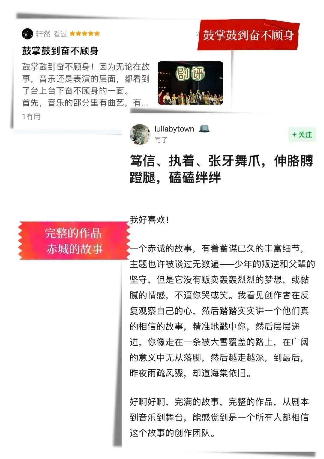 首演当日大麦开分9.8!豆瓣开分8.4!冲上微博文娱榜热搜!与此同时,还获得了2023演艺大世界音乐剧风云榜《年度最具成长力音乐剧》。