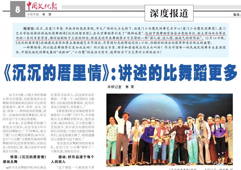 2012年《中国文化报》深度报道 舞剧《沉沉的厝里情》
