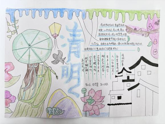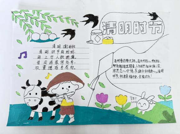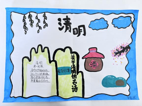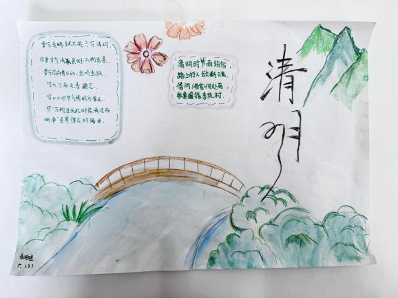 牛栏山一小的学生们利用课余时间搜集、背诵关于清明节的诗词,用画笔为诗词配上精美的插画,用心感受自己对诗词的理解、对诗意的追寻、对生活的热爱。
