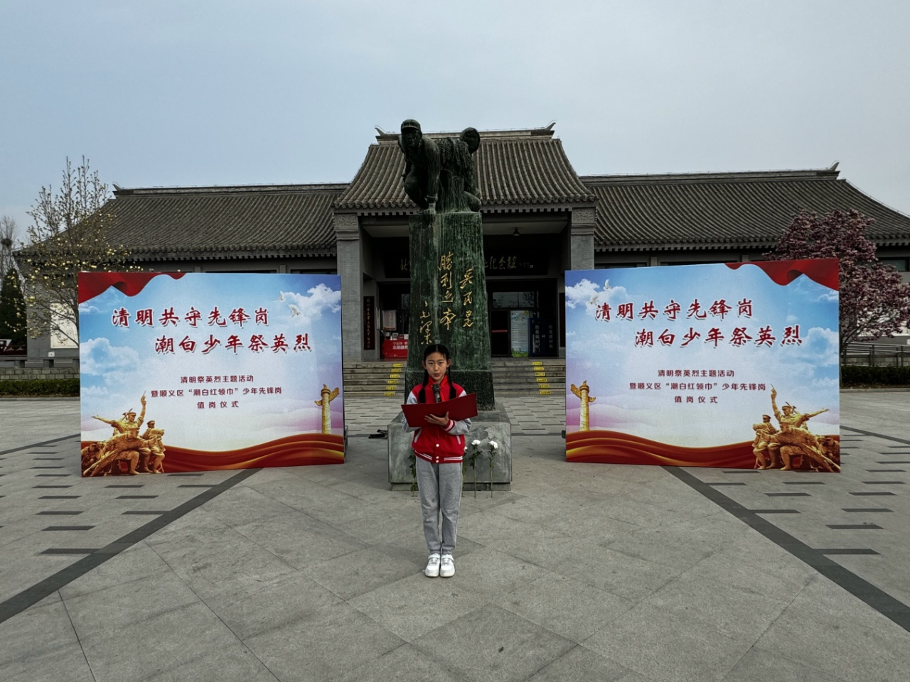 东风小学教育集团本部的少先队员代表们前往顺义焦庄户地道战遗址纪念馆参加“清明共守先锋岗 潮白少年祭英烈”活动。在这里,队员们亲身感受到了先烈们英勇抗战的历史氛围,他们向烈士纪念碑敬献花篮,默哀致敬,并参观了地道战遗址纪念馆。