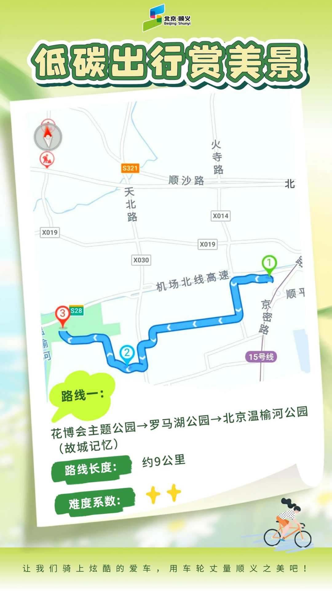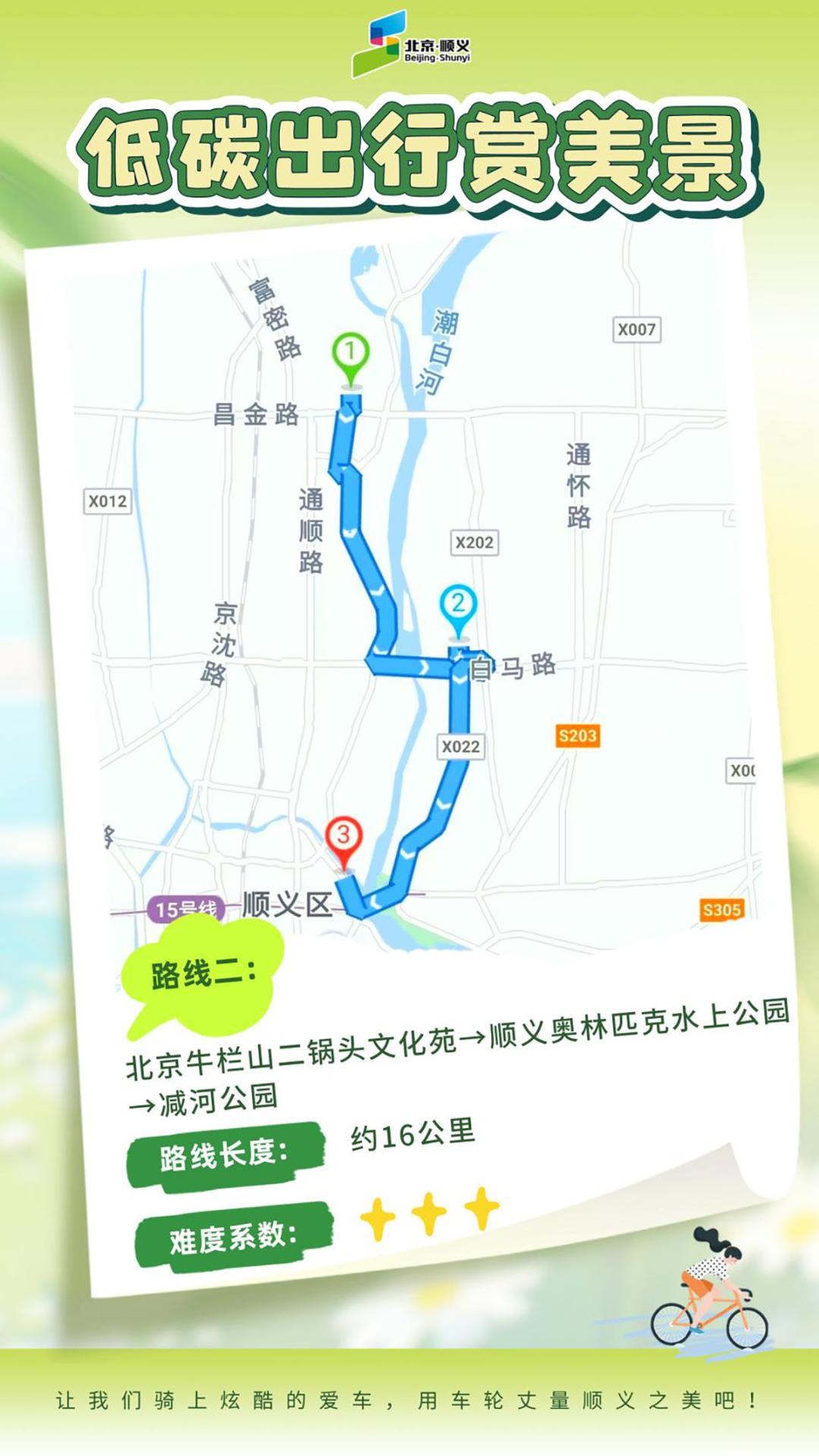 顺义赏春,不能错过河湖与公园。这是一条经典骑游路线,全程道路相对平坦,对新手也十分友好。沿路骑行,满眼尽是花红柳绿的美景,身心都能得到治愈。