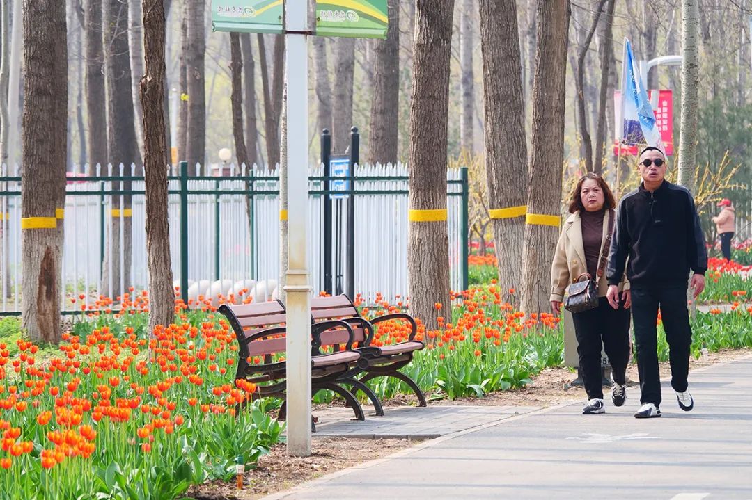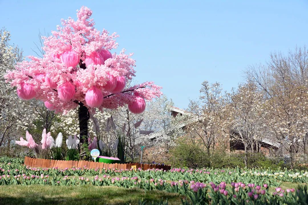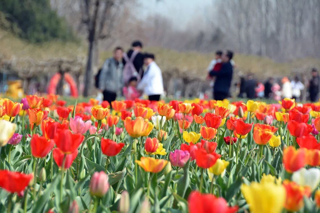 ③北京国际鲜花港是国家4A级旅游景区。眼下正是郁金香盛开的季节,绚彩的郁金香竞相绽放,走进园内,仿佛置身于如梦似幻的花海世界。
