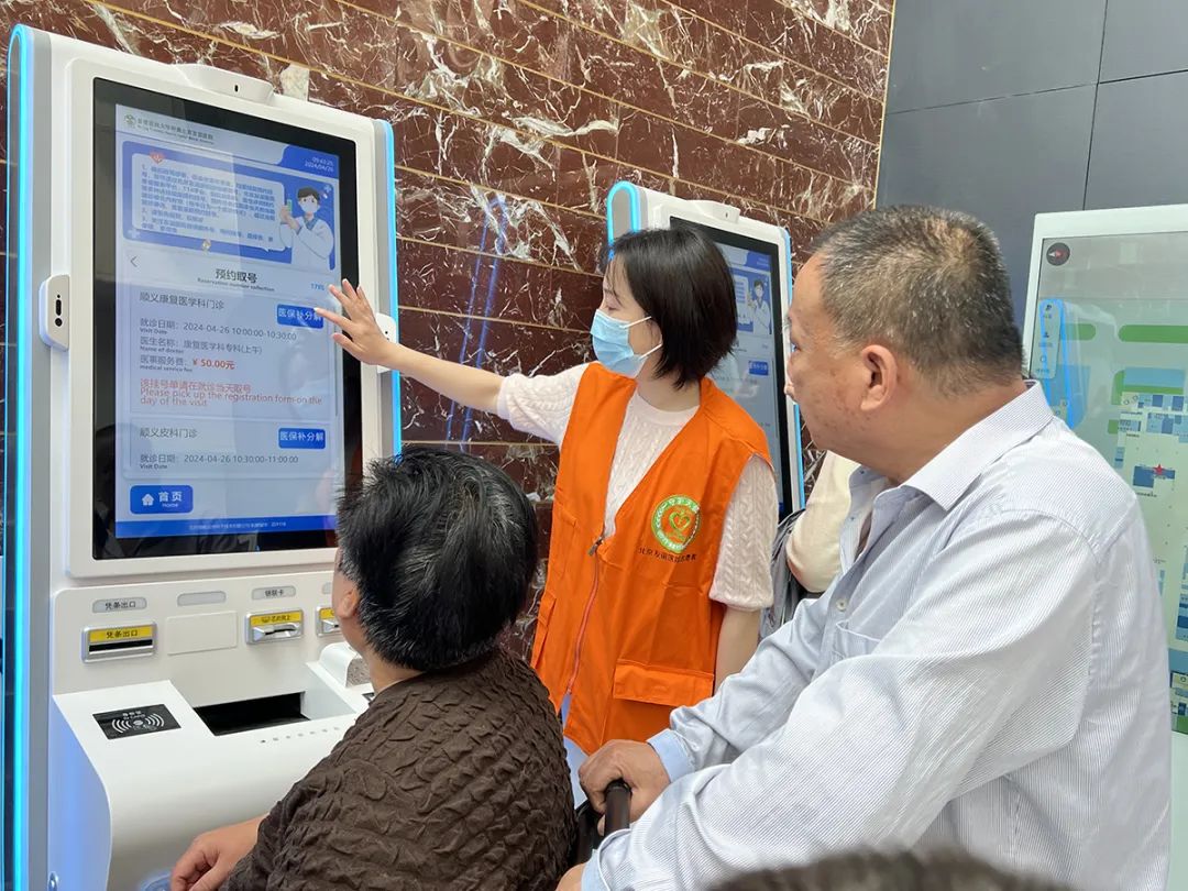 患者取号完成后,凭挂号条和报到单到相应诊区就诊。开诊首日,北京友谊医院组织导医人员、“守护天使”志愿者、大学生志愿者在门诊各楼层及自助服务机前为患者提供指引、咨询服务。