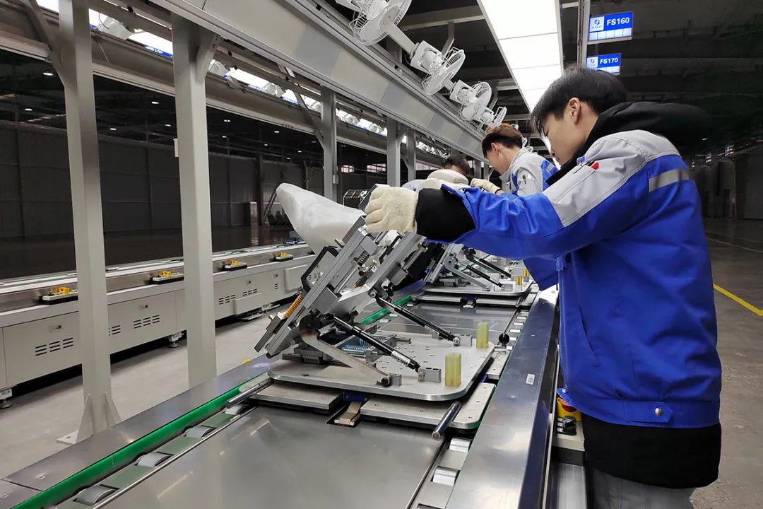 继峰座椅(北京)有限公司工作人员正在生产线进行调试。