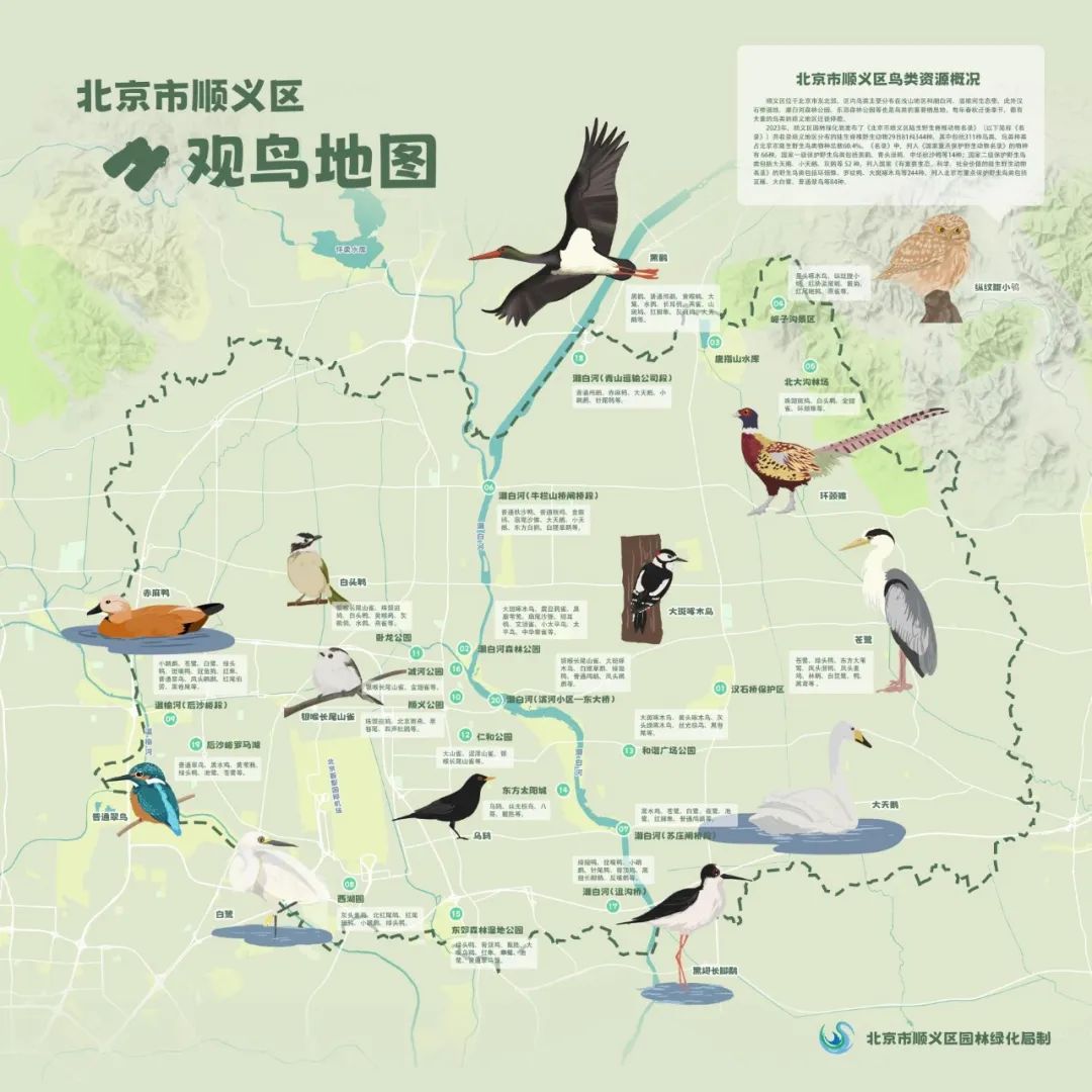 顺义区融媒体中心消息 近日,区园林绿化局发布顺义区观鸟地图。这是顺义区首份全季鸟类名录和点位指引说明,游客及观鸟爱好者可“按图索鸟”,一饱眼福。