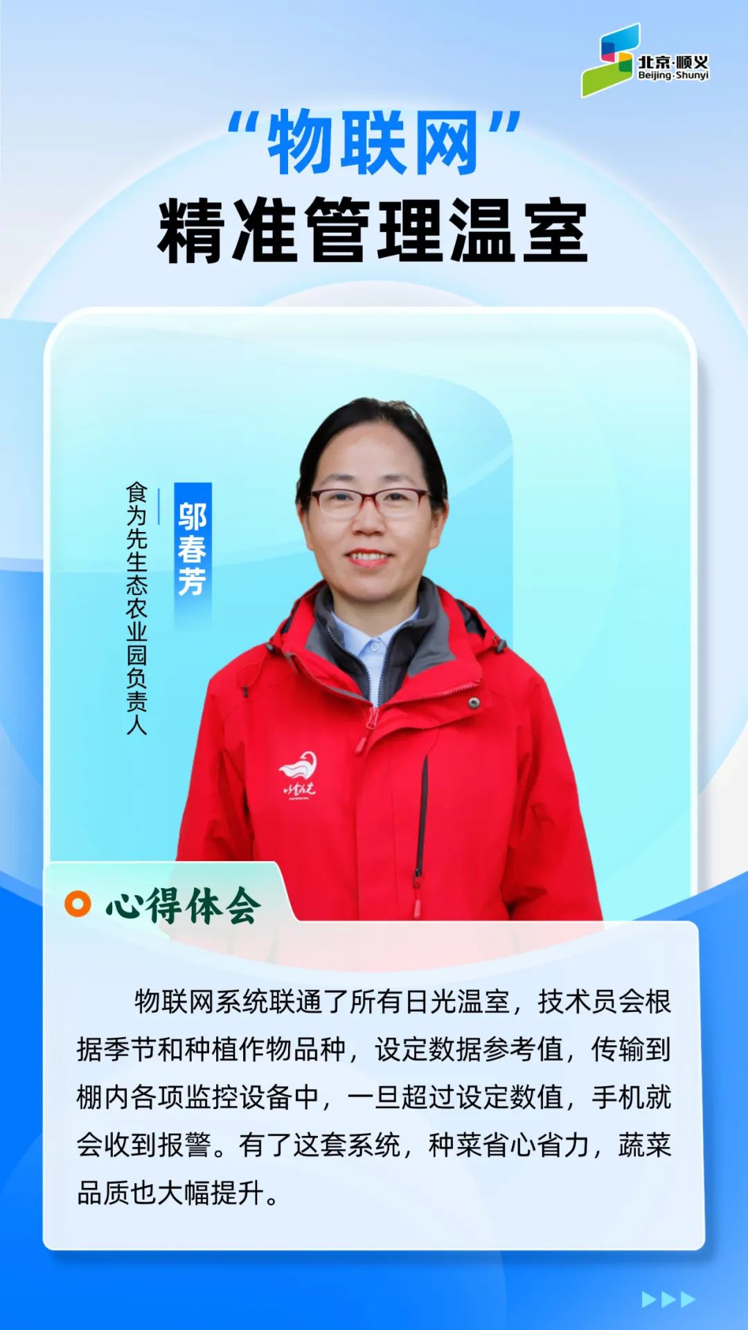 目前,顺义区耕地面积30.26万亩,主要农作物耕种收综合机械化率达98%以上。全区429台农机安装了农用北斗作业监测终端和北斗导航农机驾驶系统终端,近100家蔬菜种植经营主体的152个园区建成数字菜田2.5万亩,越来越多的“网络直播”“网上商城”建立起来。这些“新农人”用“新农具”“新农技”和“新农资”,带动了全区农产品品质的提升,也打开了更广阔的销售渠道。