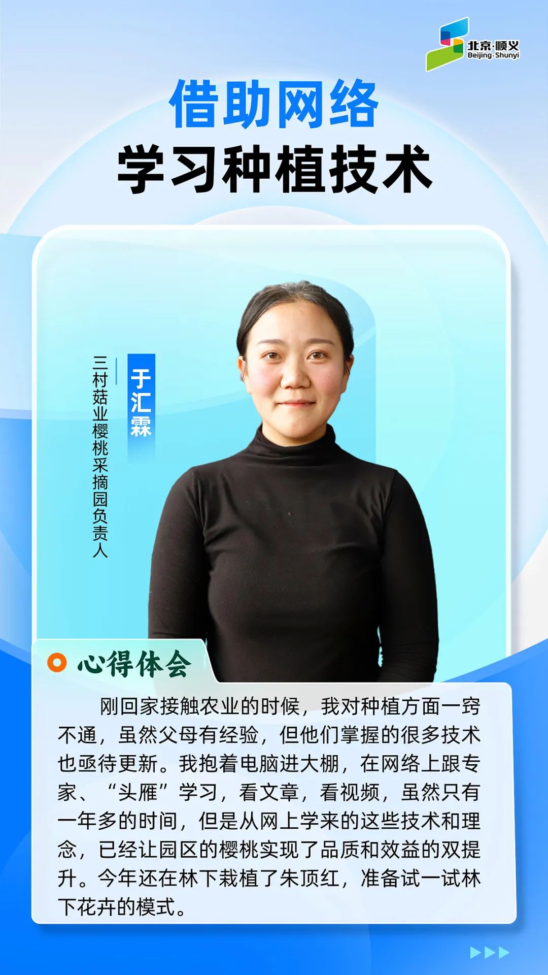 于汇霖是个“90后”,毕业后曾当过教师。她的父母经营着三村菇业樱桃采摘园,随着父母年纪的增长,她开始思考采摘园未来的发展。一年前,她毅然辞职,回归家乡和土地打起了交道。