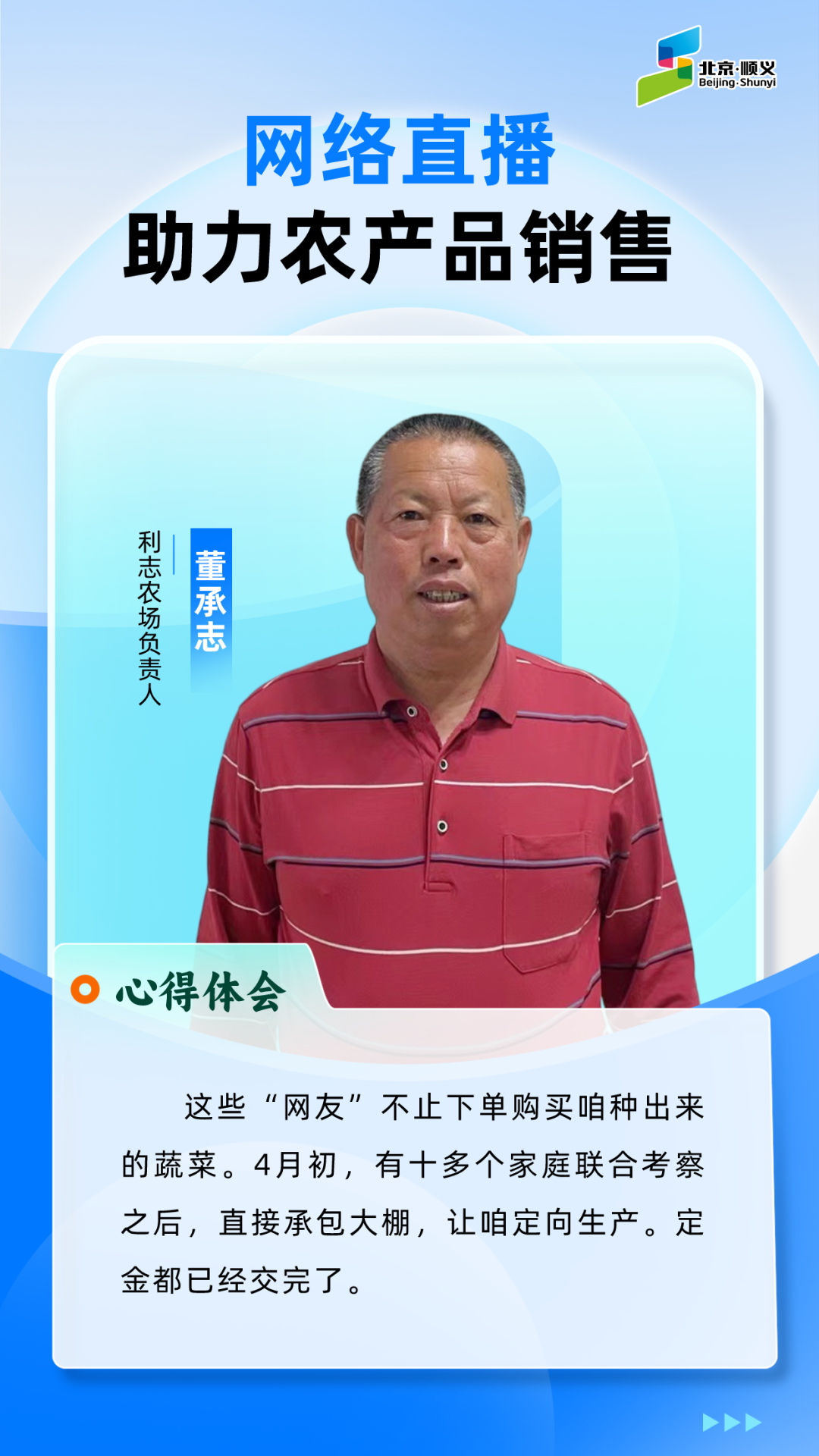 “欢迎刚进入直播间的家人们。”每天上午,牛栏山镇利志农场的负责人董承志都会准时开启直播,带着“网友”看看地里蔬菜长势,展示各种蔬菜“小时候”长什么样子。