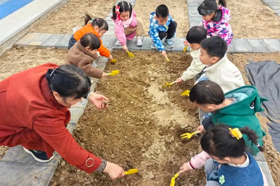港馨东区幼儿园路劲御和府园区的孩子们种下西红柿种子。