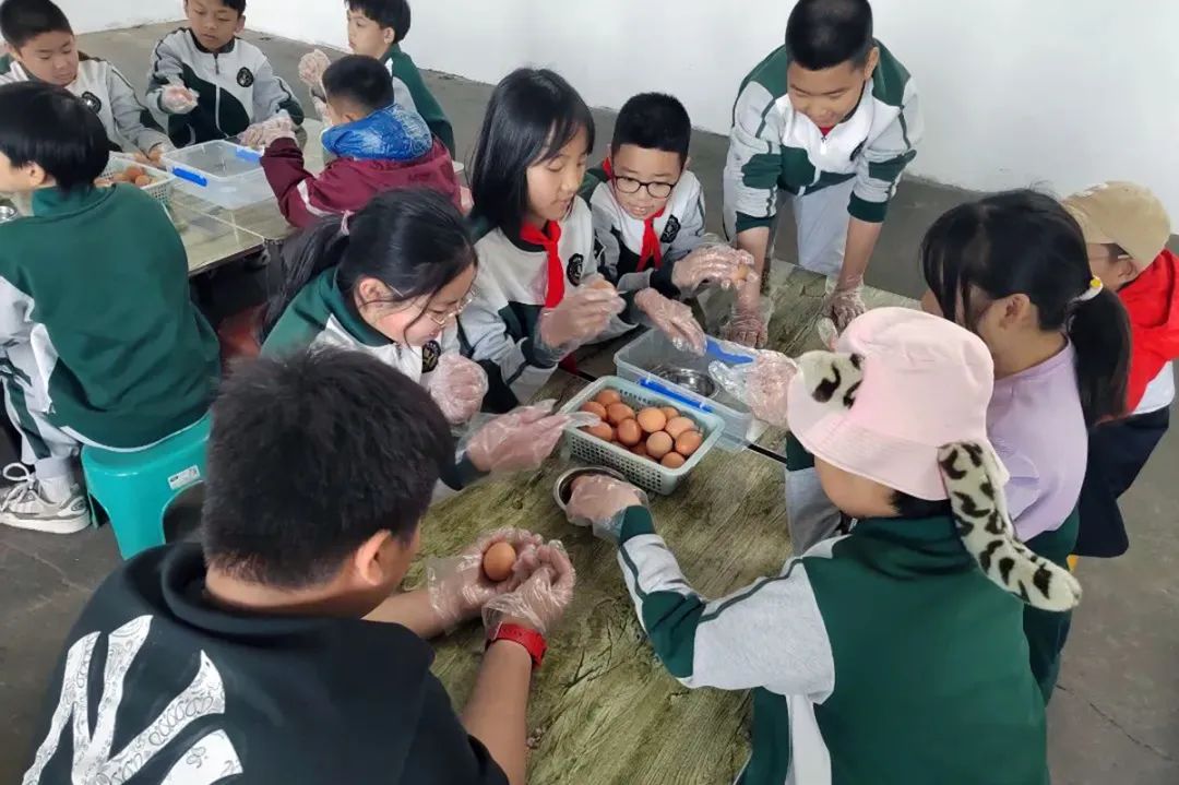 牛栏山一中实验学校学生学习制作稻田咸鸭蛋。