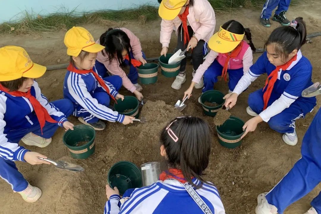 顺义一中附小的学生们学习种植盆栽有机蔬菜。