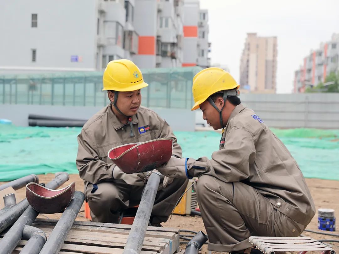 在项目现场,北京市恒锋市政工程有限公司焊工班组长杨坤正在焊接燃气管线。焊枪口绽放出火花,两部分管线逐渐融为一体,他焊接的管线接口光滑平整。