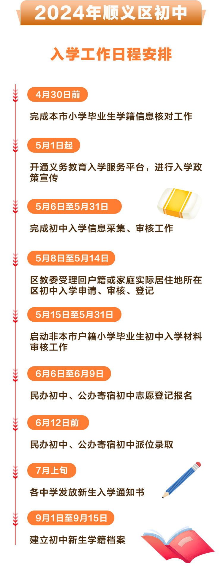(五)严格学籍管理。顺义区使用统一的小学和初中入学服务系统,将每一个适龄儿童少年的入学途径和方式全程记录。北京市中小学学籍管理信息系统将依据小学和初中入学服务系统建立新生学籍。加大民办学校监管力度,不得招收不符合条件的学生在校就读。区教委将进一步对义务教育阶段入学工作开展重点督导检查。