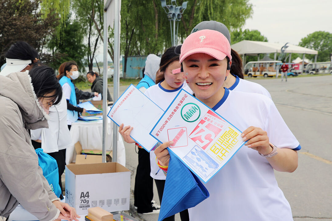 终点还设置了打卡盖章活动,五款主题印章吸引青年们排队盖章,留下2024年五四青年节专属印记。