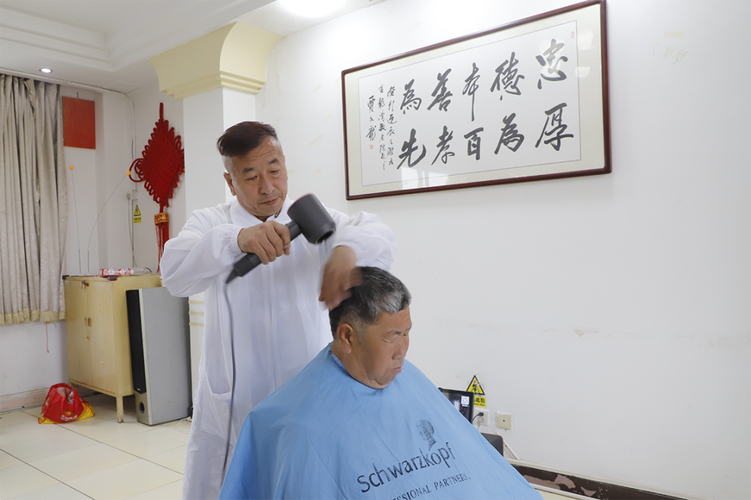 第一位是工作人员辛立发。“周边理发不方便,我就和老石商量,我付费,他每月给我剪一下。”辛立发介绍,“老石说啥也不肯要钱,坚持免费。”