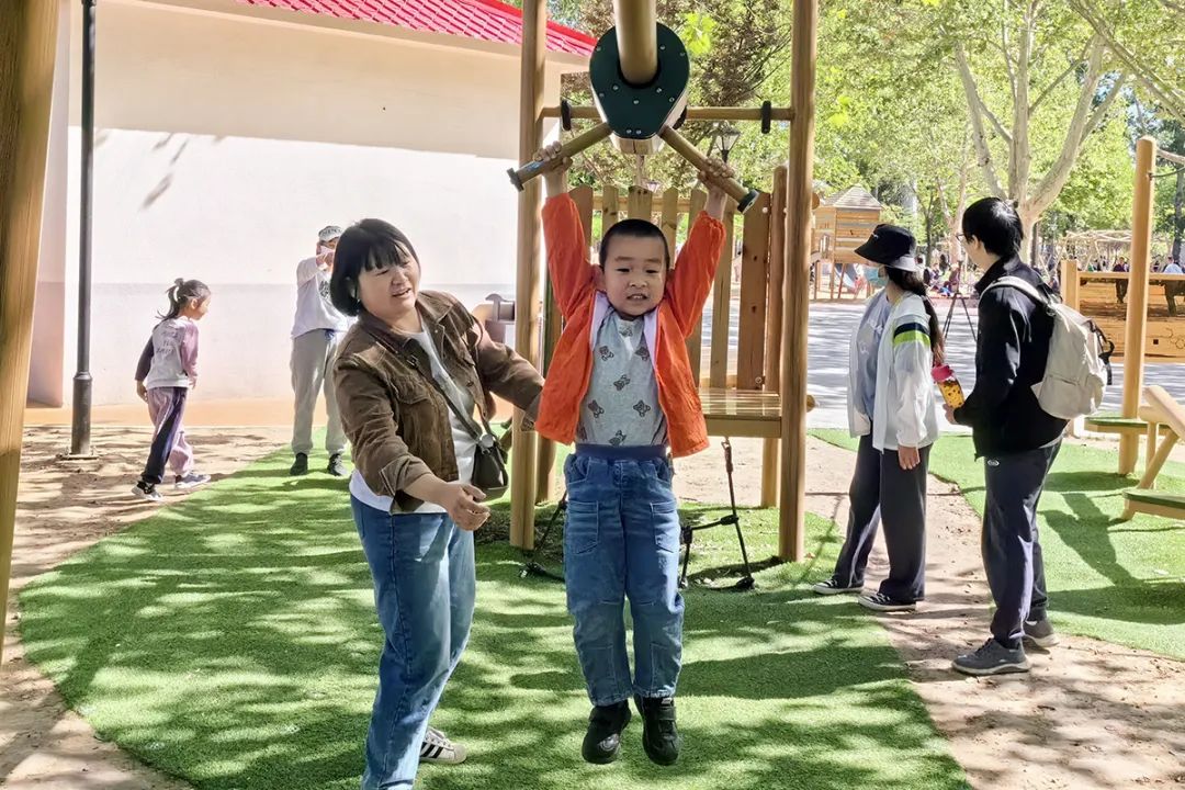 顺义公园、仁和公园、卧龙公园、怡园公园四家公园引进无动力拓展式游乐设施,升级改造后于四月初免费开放,为市民提供兼具休闲与遛娃功能的绿色空间,受到家长和孩子们的喜爱和追捧。“五一”期间,四家公园儿童游乐场迎来了客流高峰。