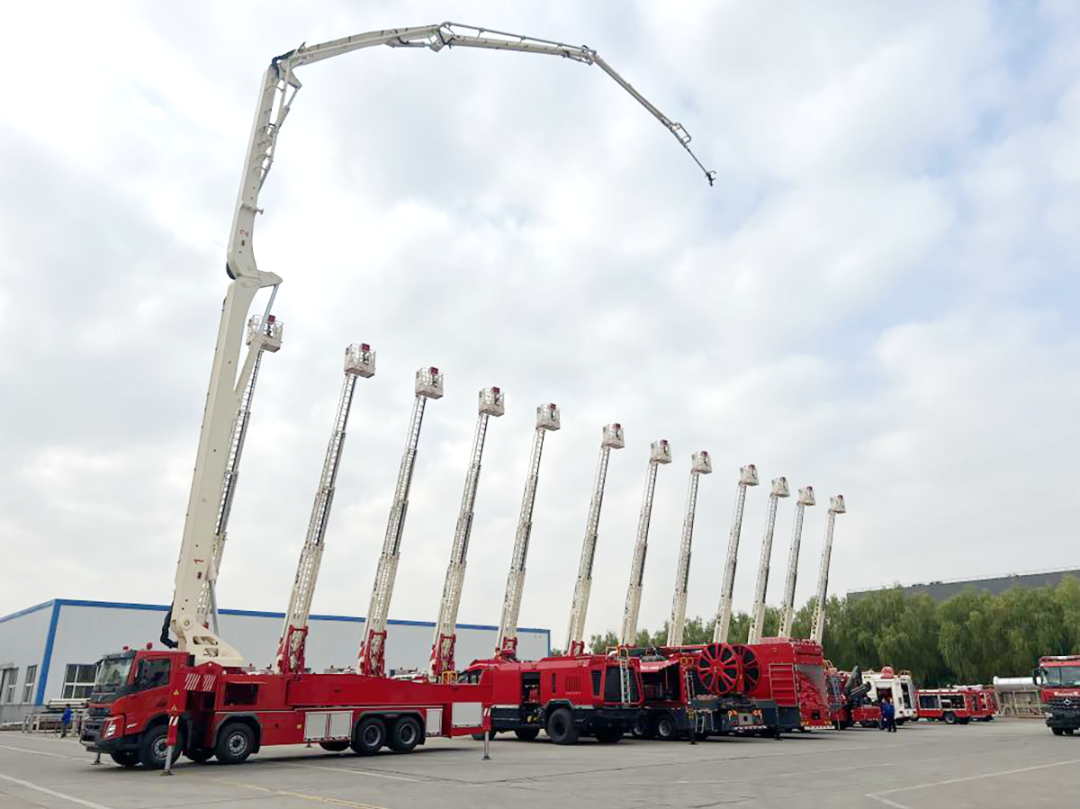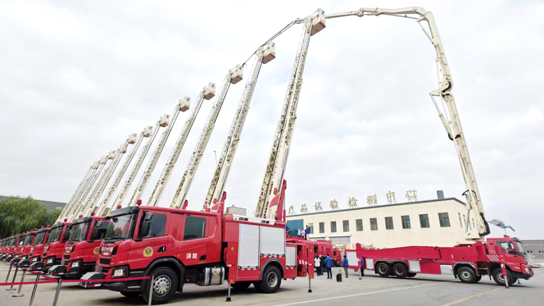 72米举高喷射消防车、56米大跨度举高喷射消防车、22米云梯型多功能城市主战消防车等新品,在北京中卓时代消防装备科技有限公司先后下线,成为各级消防部门快速高效扑灭火险、救护遇险人员、抢救财产的“利器”。