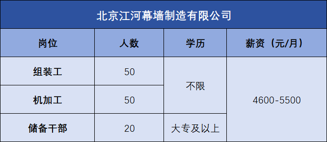工作地点:牛栏山镇牛汇北五街5号江河幕墙北门