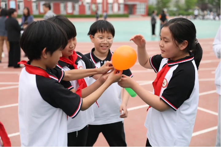 趣味心理游戏分为“冥想”“吃货的背后”“曼陀罗绘画”“我来夸夸你”“改变我的人”“合力吹气球”“探索自我”“感觉图表”“坐地起身”9项活动。学校四年级700余名学生参加。