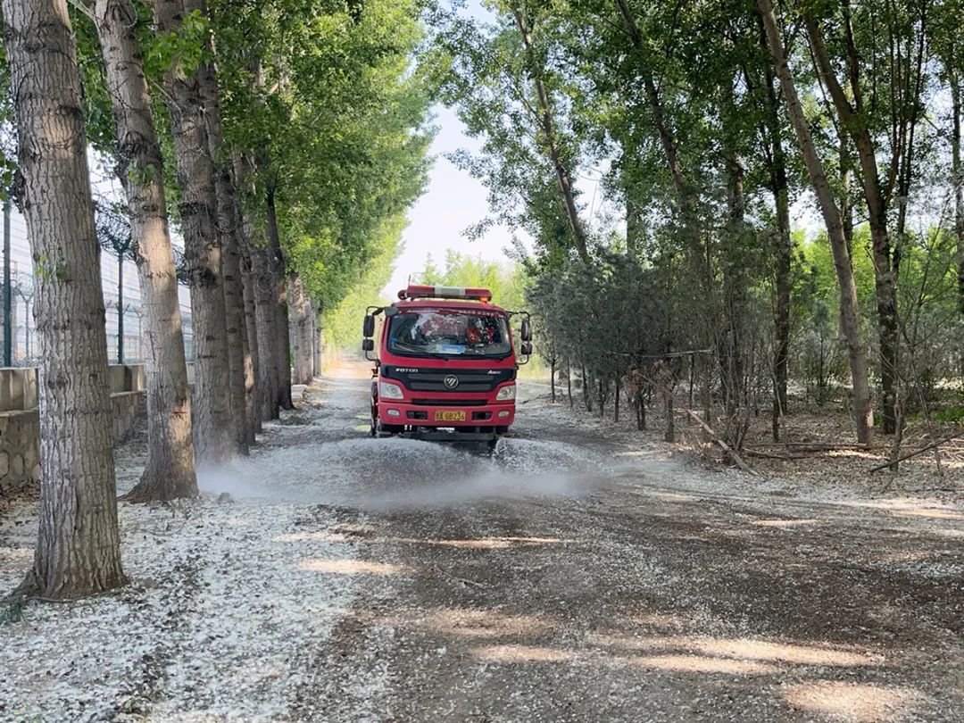 仁和微站在村内对杨柳絮进行湿化作业。