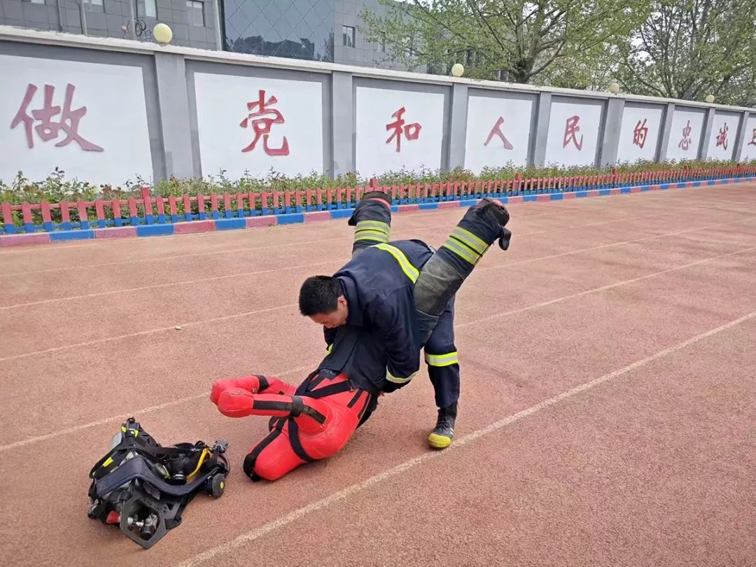 高丽营微站消防员进行训练。