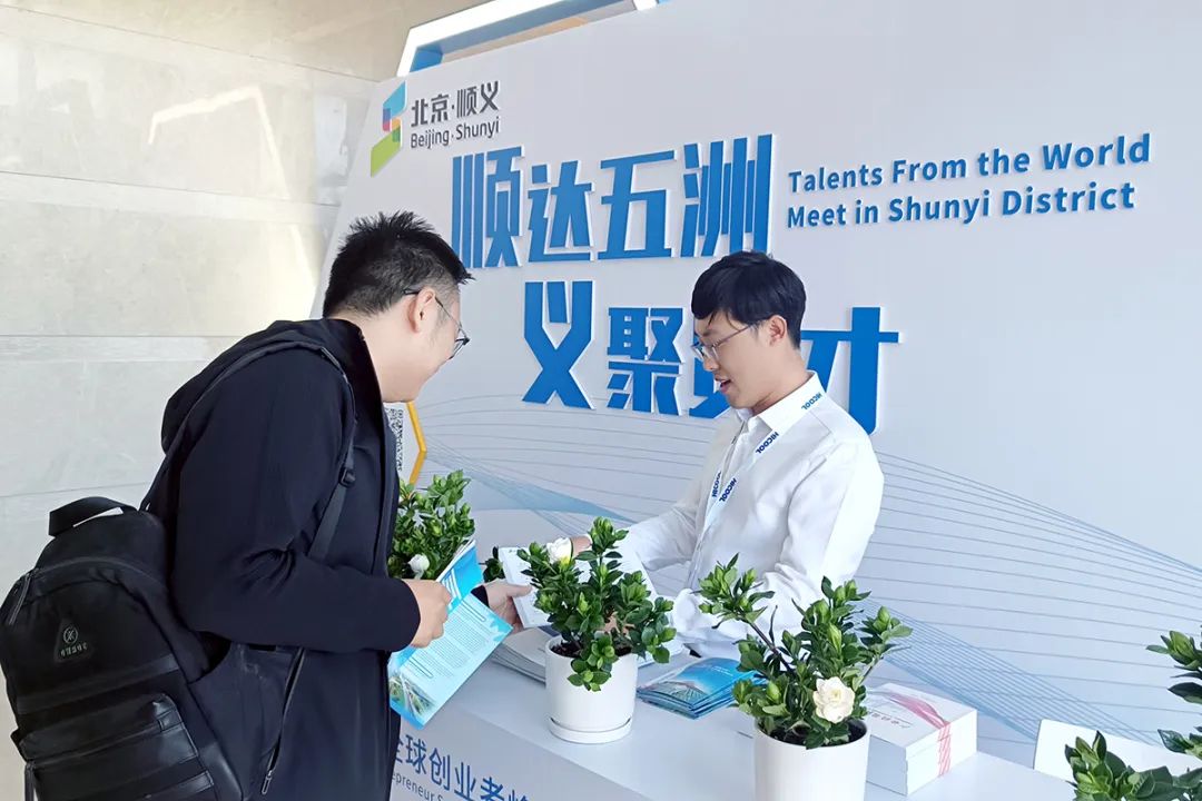 比赛期间,区总部人才中心在赛事现场搭建宣传展墙,通过视频、照片、二维码网页等形式展示顺义区区位优势、政策优势、环境优势。展墙前设立咨询台,由各相关部门工作人员为参赛创业者提供详细专业的政策咨询服务,吸引更多创业项目落地顺义。