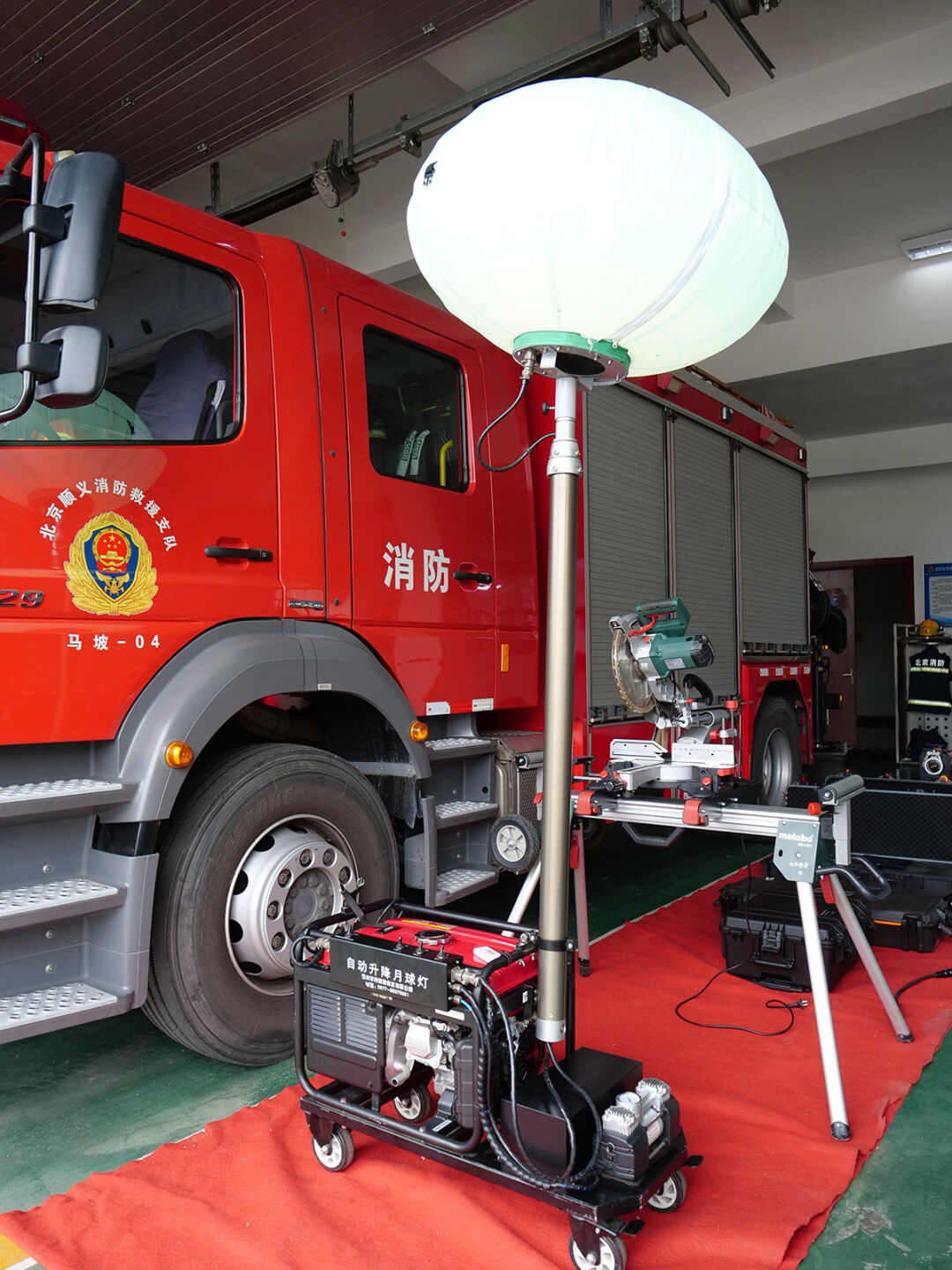 用于户外应急照明,遥控气动升降杆4.5米,球形月球灯罩可实施360°全方位照明。