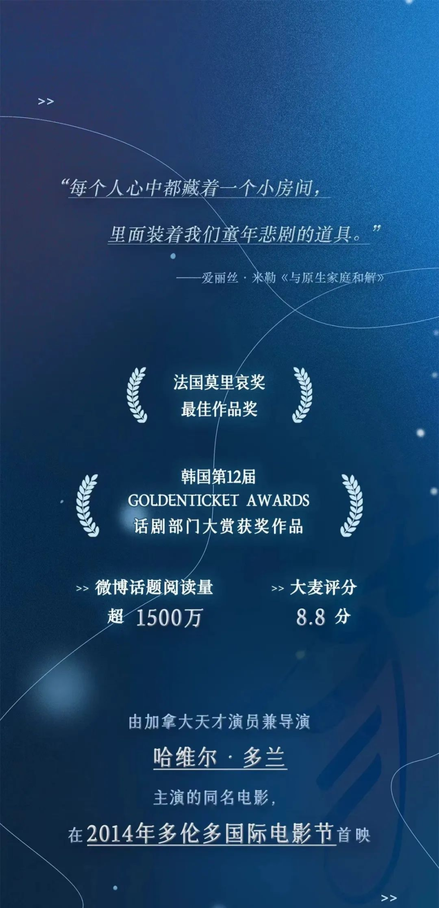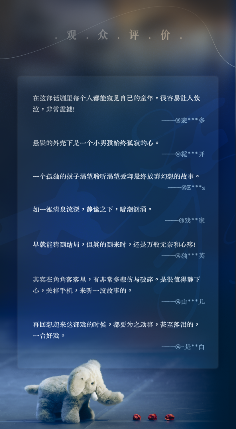 中文版为“一台好戏”小剧场话剧又一力作,首演至今,微博话题阅读量超1500万,大麦评分8.8分。