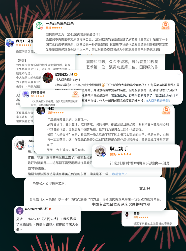 中文原创音乐剧口碑巅峰之作,从2021年首演至今,全国巡回20多个城市,近100场演出,场场口碑在线。10万人仅听完主题曲就打出9.5分的高分、媒体称之“年度最瞩目的人气音乐剧”。