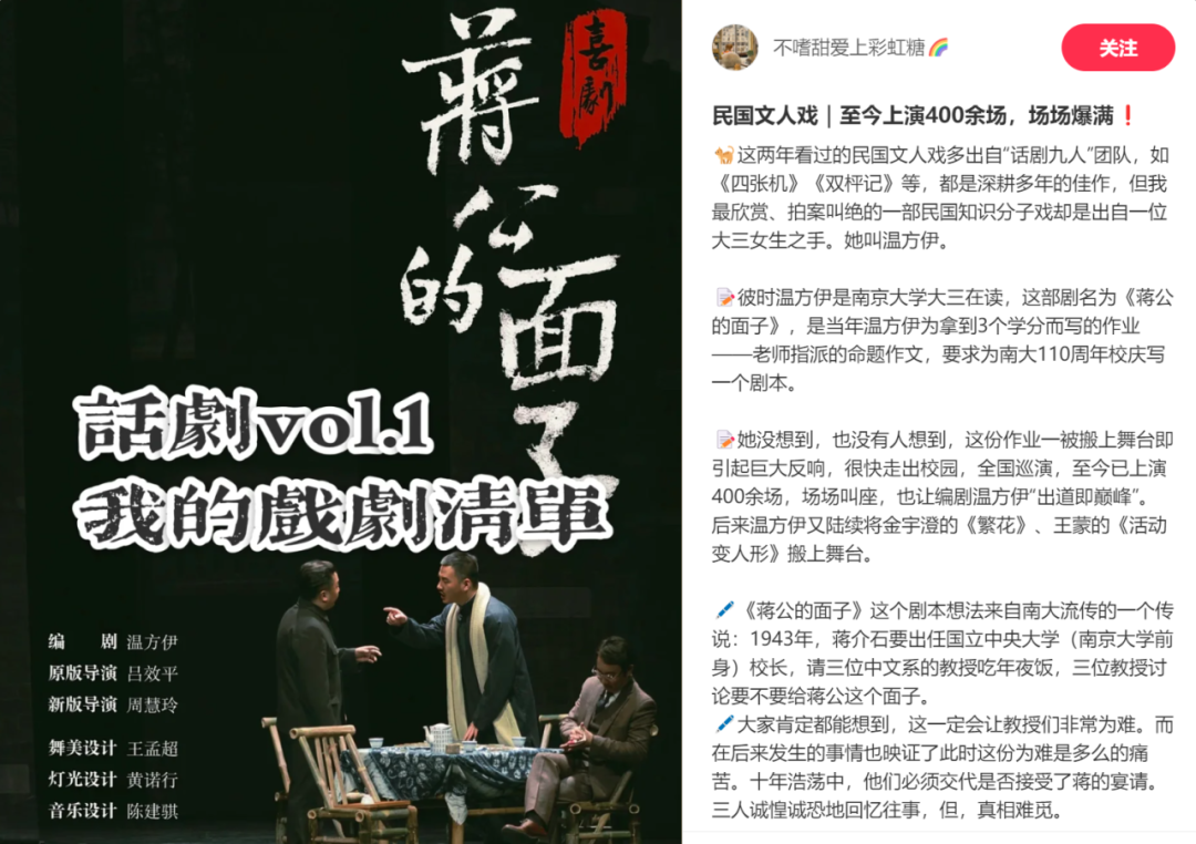为庆祝南京大学戏剧学科100周年诞辰,民国喜剧《蒋公的面子》现已全新升级!