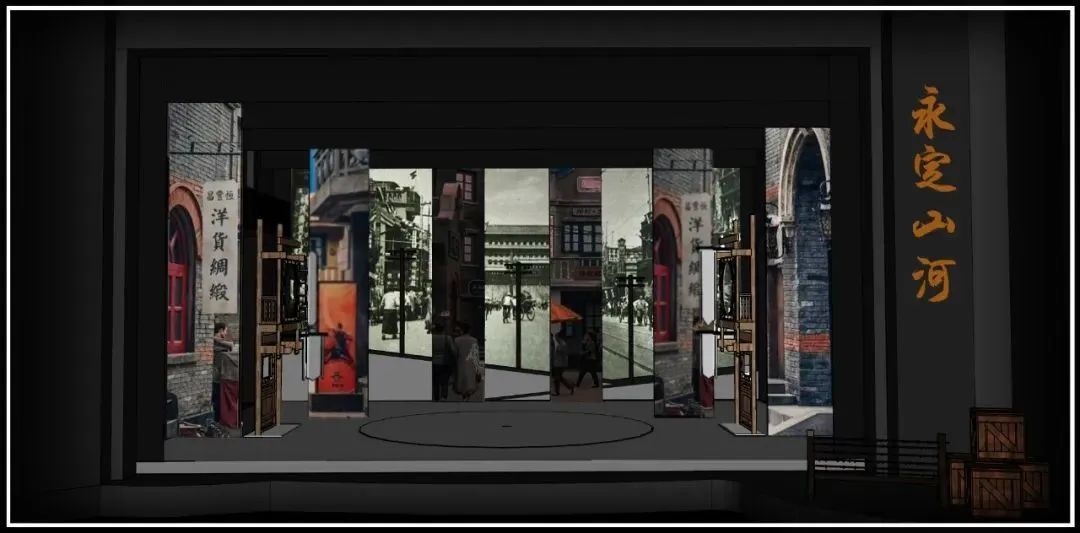该剧运用前沿新潮的舞台艺术装置,打造诗意化、意象化的可移动舞台场景。同时结合北京中轴线上的实景,巧妙将钻圈等传统杂技道具作形象化全新设计,运用光影置景手段形成强烈的视觉冲击感,尽显天桥杂技的“难、奇、绝、美”。
