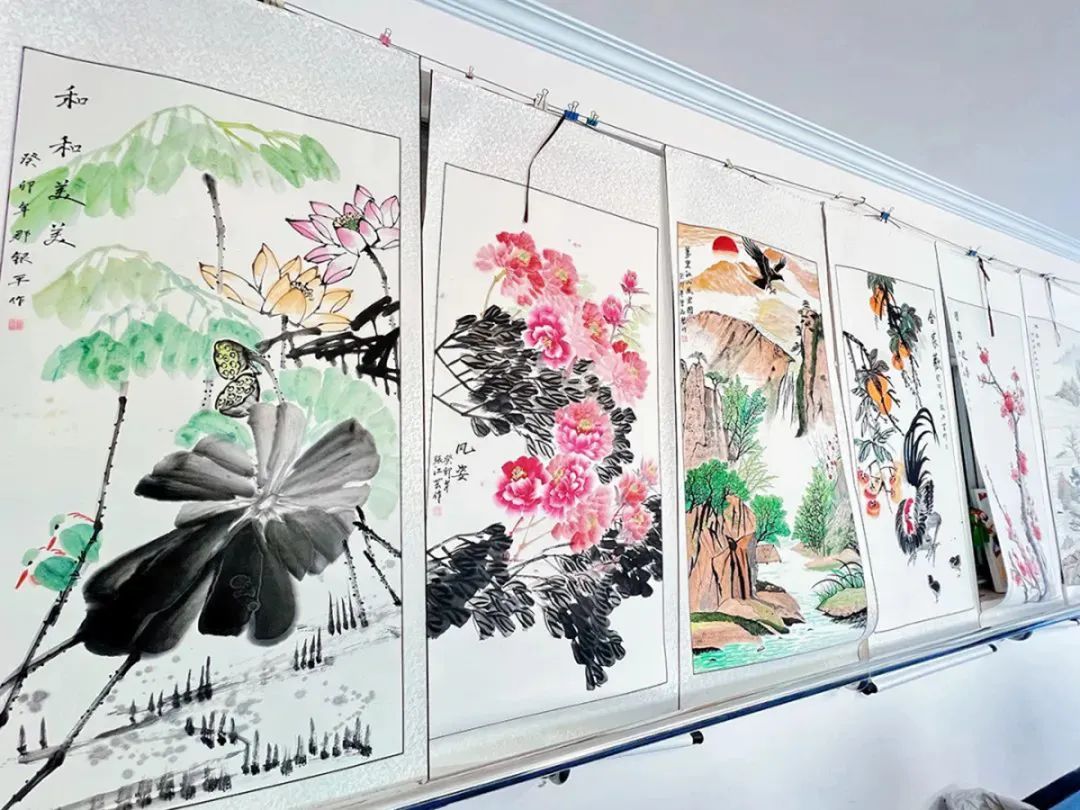 随着学员队伍逐渐壮大,刘军在寺上村和西范各庄村的幸福晚年驿站开设了国画课程。他还带领学员参加书画比赛,作品屡屡入展、屡屡获奖。“每次参赛获奖,老人们都很开心,看着他们脸上洋溢着幸福的笑容,我就觉得我做得很值,很有意义。”刘军说。