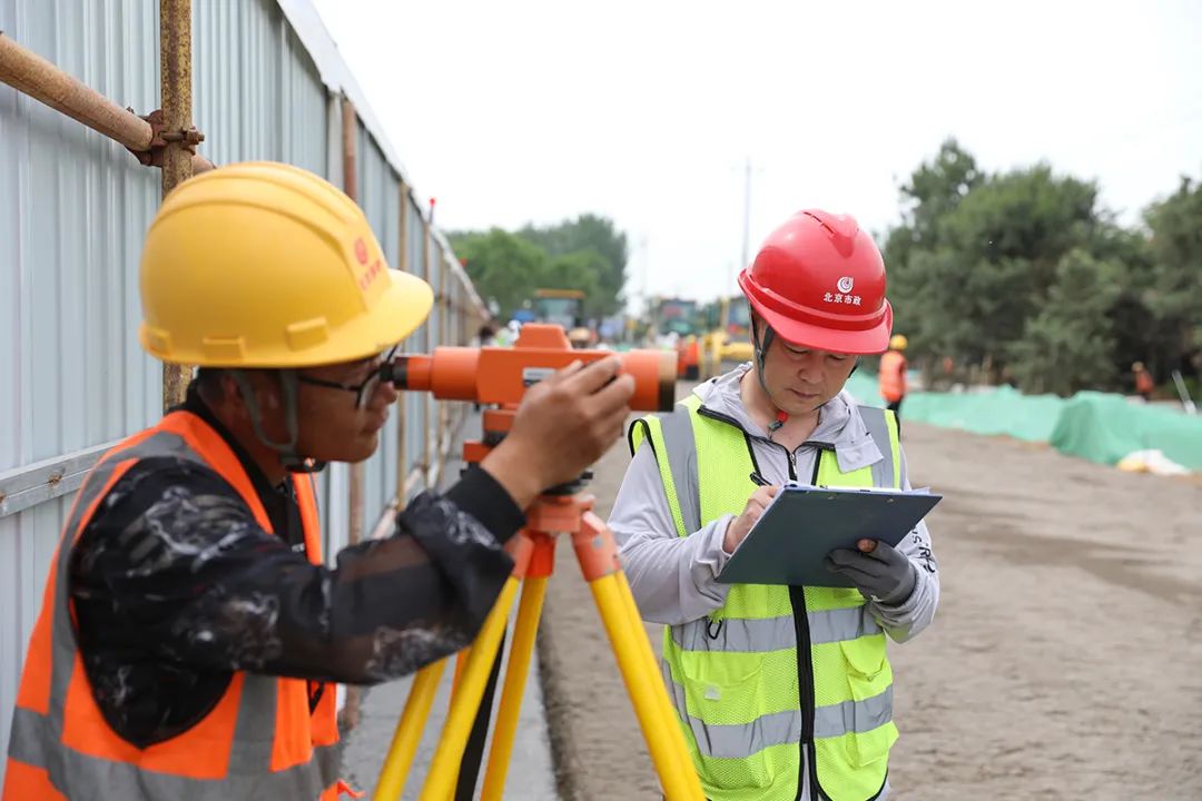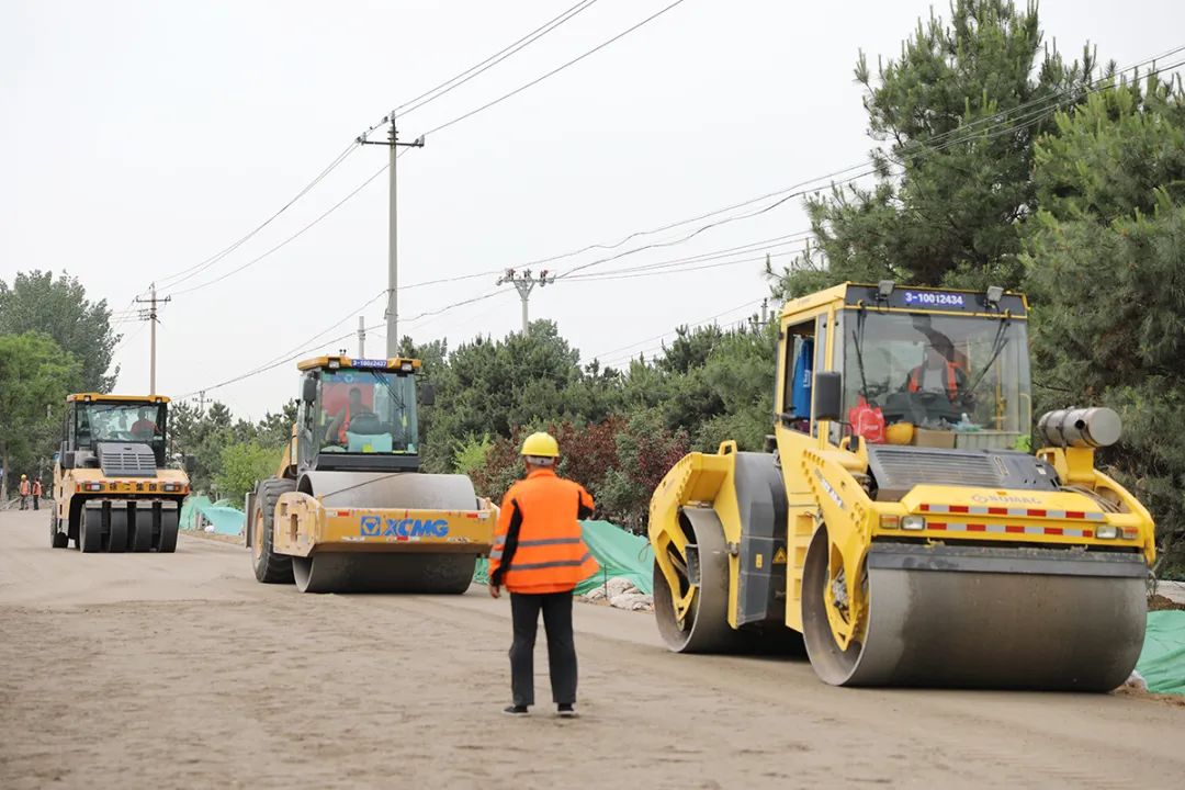 在铁东路南侧路段的施工区域内,机械轰鸣,10余台专业机械设备协同作业,工人们争分夺秒进行绿化、交通、照明等附属工程施工。施工区域外,设置了隔离围栏,导行人员指挥过往车辆有序通行。