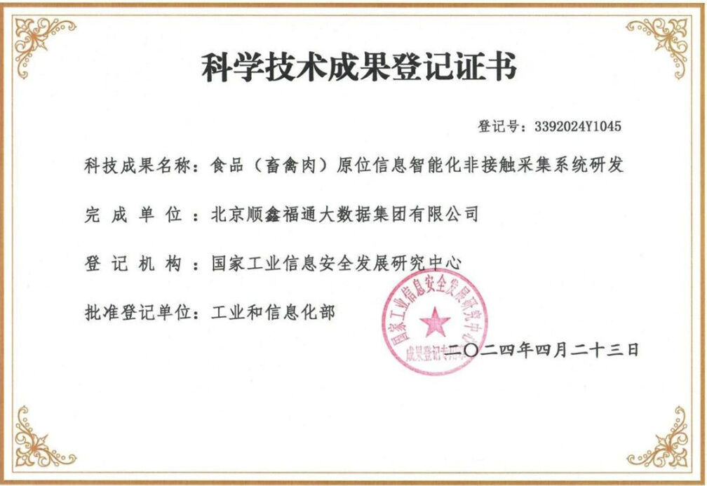 顺义区融媒体中心消息 顺鑫福通“食品(畜禽肉)原位信息智能化非接触采集系统研发”成果近日荣获了国家工业信息安全发展研究中心颁发的科学技术成果登记证书,并入选国家科技成果库,市场占有率国内排名第一。这标志着顺鑫福通已拥有食品(畜禽肉)信息采集系统领域的自主知识产权,技术已达到国内领先水平。