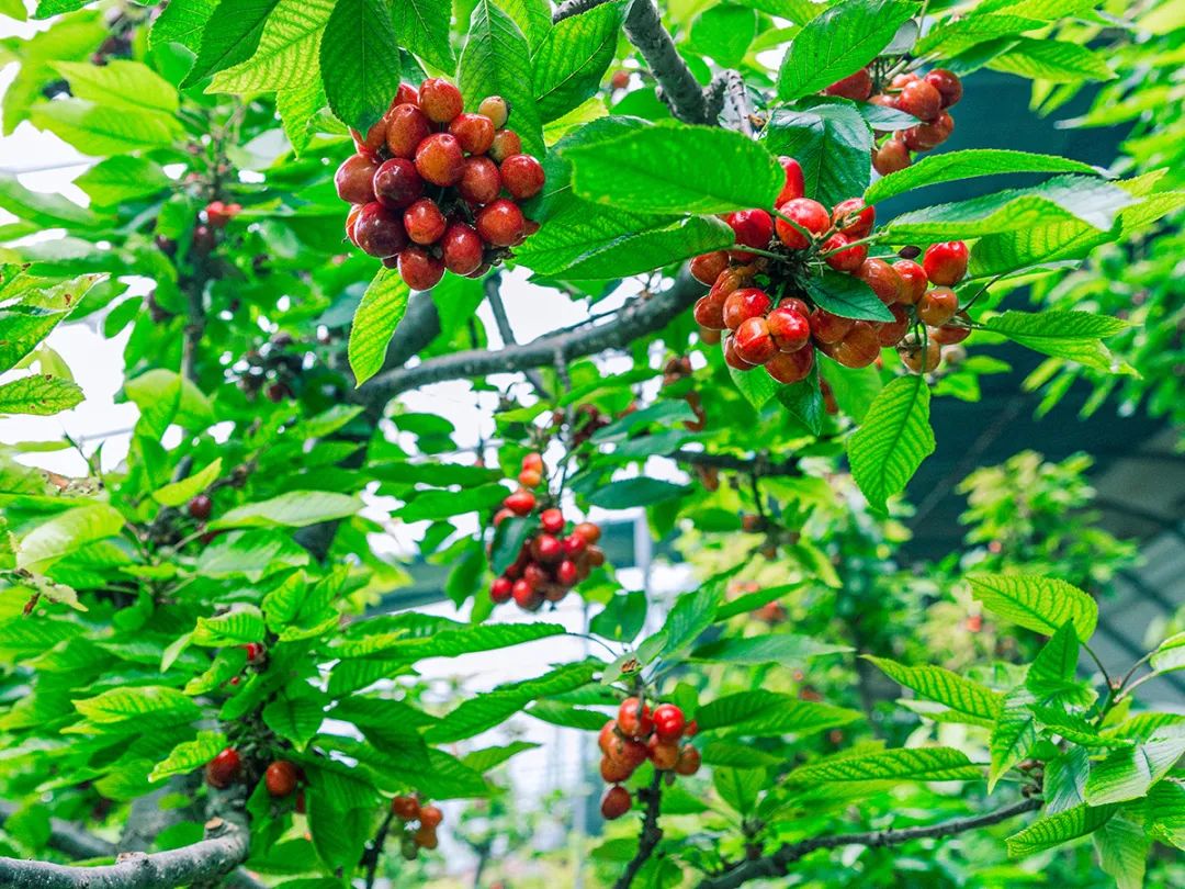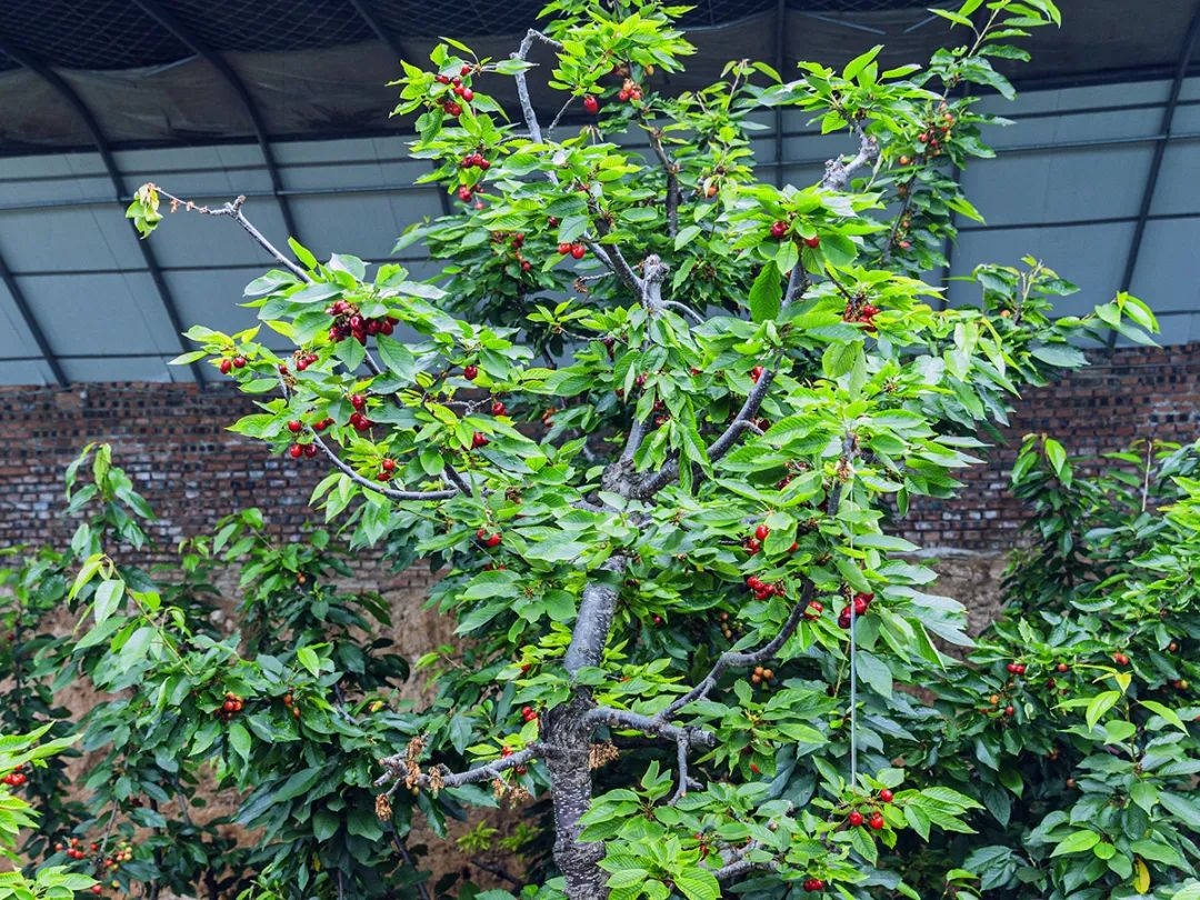 走进北京旭日东成生态农业科技有限公司的设施樱桃暖棚,绿油油的樱桃树枝繁叶茂,红彤彤的樱桃一簇簇晶莹剔透,果农穿梭其间,忙着摘果售卖。
